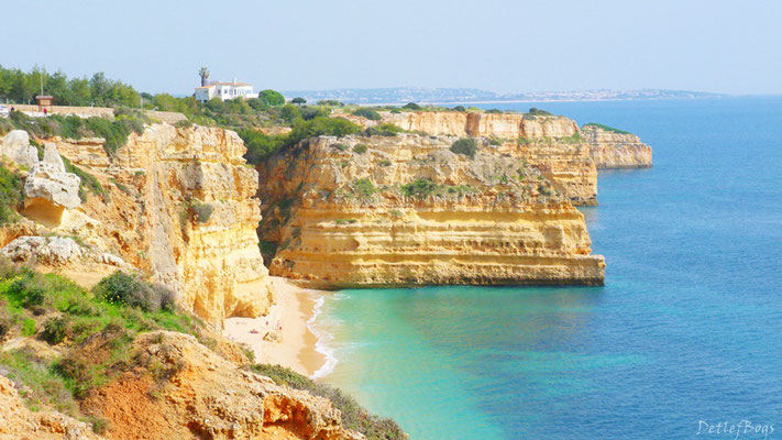L'Algarve, région méridionale du Portugal, est mondialement connue pour ses plages de sable fin, ses falaises et ses rochers. Les hivers sont doux et même au mois de février, une bonne partie de la végétation est déjà en fleurs. Les falaises sur la côte à l'ouest et au sud sont à couper le souffle. Cette région avec sa capitale Faro, où se situe l'aéroport international, est l'une des régions touristiques les plus importantes d'Europe.